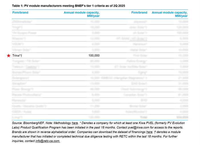 Trinasolar has once again secured its position in the BloombergNEF (BNEF) Tier 1 list for Q2 2025, reaffirming its exceptional bankability, industry-leading technologies, and robust shipment of its 210mm modules. This recognition further cements Trinasolar's reputation as a global leader in smart solar and energy storage solutions, trusted across global markets.