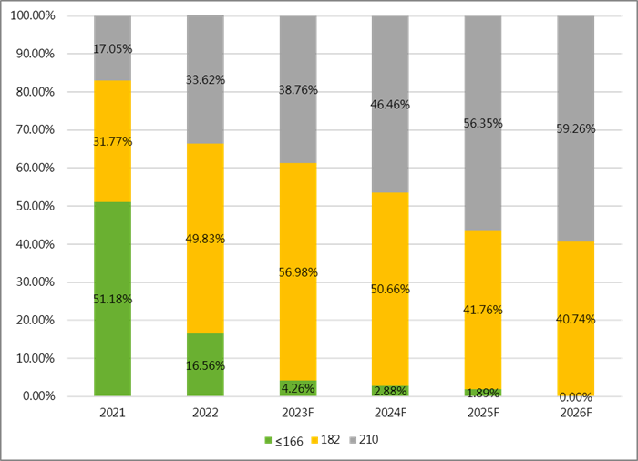 Figure 1: Capacity share of wafers of various sizes (Unit: %)