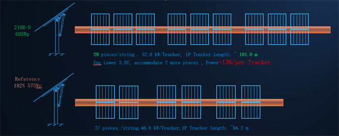 The Vertex N 605W modules, developed using advanced n-type i-TOPCon cell technology, came onto the market in November. The dimensions of this series of module are 2384x1134mm, with power 30W higher than that of other products on the market. This superior dimensional design allows perfect utilization of the tracker length. Compared with conventional n-type modules with 72 cells, the installed capacity on a single row of trackers is increased by 13%. Compared with the previous generation of medium-format products, Vertex n-type 605W modules cut BOS by 1.8%~4.5%, making them the absolutely ideal for trackers. By the first quarter of this year the volume of shipments of 2384x1134mm (including 2384x1096mm) modules had reached 30GW. Cumulative shipments are expected to reach 50GW by the end of this year.