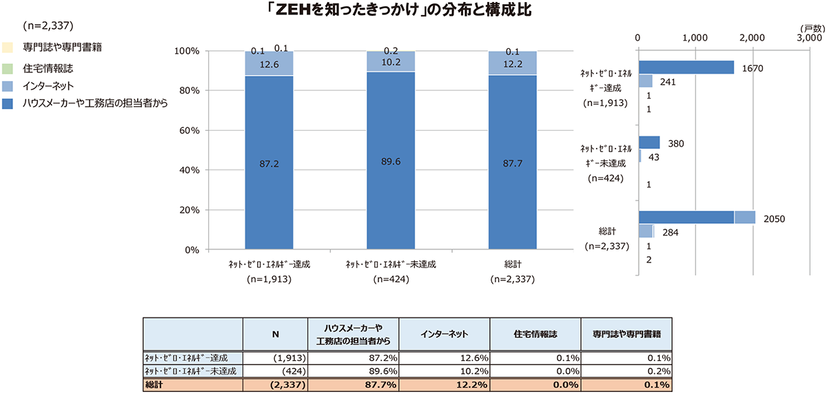 2016年度の事業者に聞いた「ZEHを知ったきっかけ」は、「ハウスメーカーや工務店の担当者から知った」がほぼ9割を占める。一方、住宅情報誌で知った建て主はゼロ。生活者向けメディアを活用したニーズ喚起や啓発は今後の課題だ。