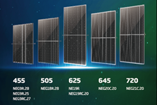 業界標準化が発表されたVertex N 625W(NE19R)は、ガラス・バックシート片面発電モデルの品種拡充、および720W(NEG21C.20)はバスバー技術などを改善する事により、共に最大出力を従来比10W向上させました。